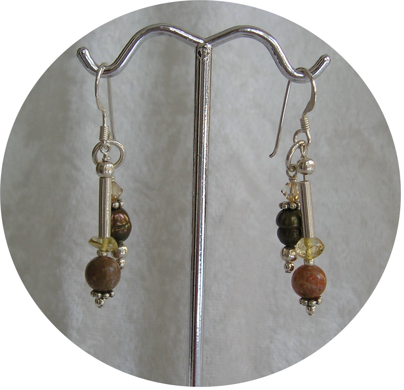 Jasper, bronze freshwater pearl and citrine sterling earrings ED1202 Dangle is 1.25" long $27.00