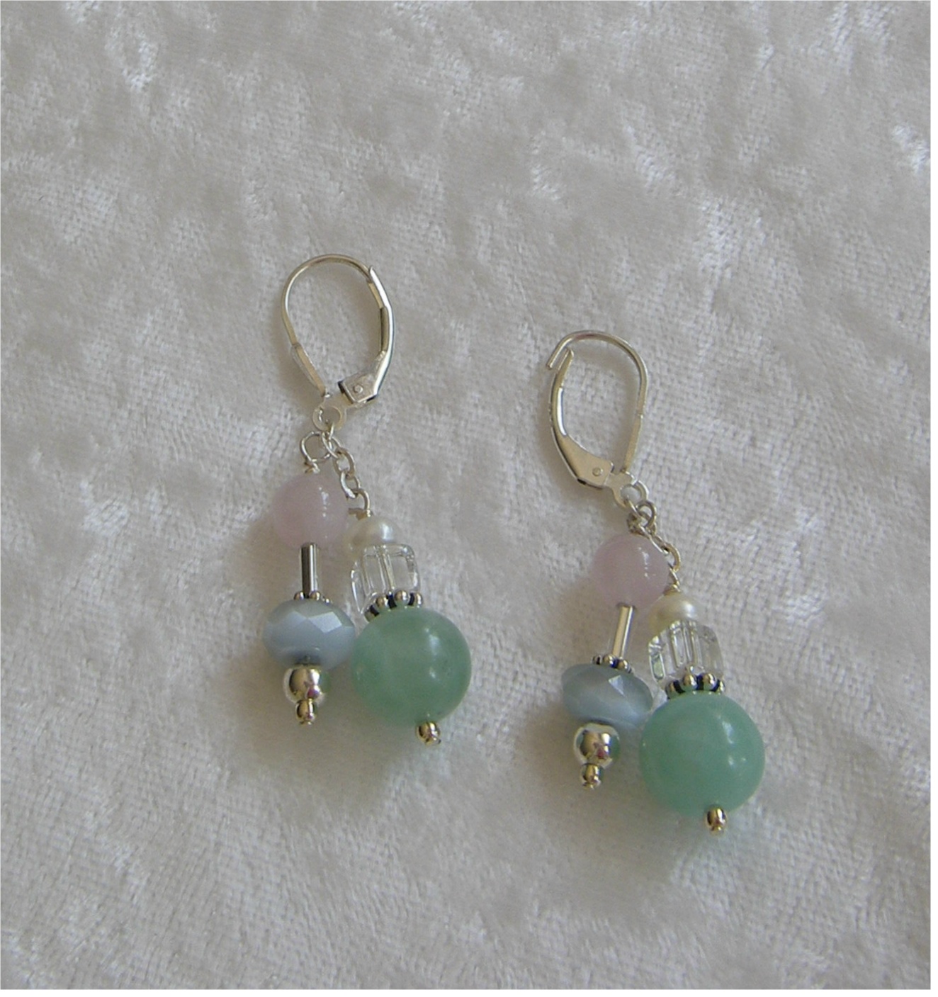 Sterling double hung amazonite rock quartz and rose quartz earrings. $32.00 E01